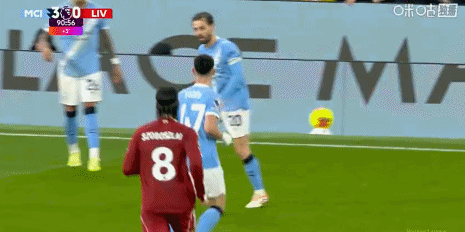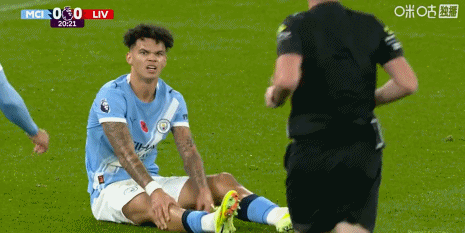 英超第90分钟,琼斯被萨维尼奥穿裆后将其放倒,吃到黄牌