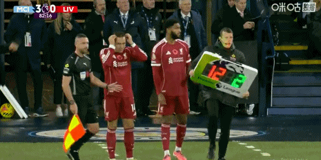 英超第83分钟,利物浦换人,基耶萨和戈麦斯替补登场