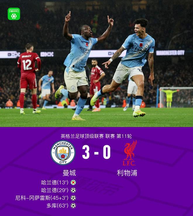 北京时间11月10日,英格兰足球超级联赛第11轮,曼城坐镇主场迎战利物浦。比赛中,哈兰德主罚点球未能命中,但随后迅速调整状态,接马特乌斯-努内斯助攻成功破门,为球队打开胜利之门。上半场补时阶段,伯纳多-席尔瓦送出精准传球,尼科-冈萨雷斯跟进得分,进一步扩大领先优势。易边再战,尼科-奥赖利送出关键助攻,多库冷静施射建功,将比分锁定为3比0。最终,曼城在主场以三球完胜利物浦,全取三分。关键事件