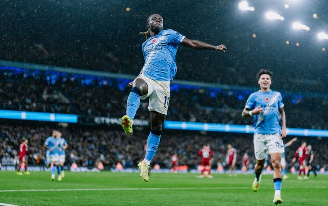 北京时间11月10日凌晨,新赛季英超第11轮一场焦点战,曼城主场迎战利物浦。上半场,多库造点,哈兰德主罚被扑出,随后头球帮助曼城先拔头筹,范戴克头球破门被吹无效,冈萨雷斯远射变线破门帮助曼城再下一城;下半场,多库远射破门。最终,曼城3-0大胜利物浦,距离榜首只差4分。赛前,两队都在本周中的欧冠取得胜利,曼城主场4-1击败多特、利物浦主场1-0战胜皇马,尤其利物浦,终结一波双线5连败之后已经拿下2连胜,已经呈现反弹的迹象。联赛十轮过后,两队相差1分,曼城积19分暂居第二、利物浦积18分暂居第三,本场比赛结果将对于争冠形势产生一定影响。上赛季,利物浦主客场双杀曼城,时隔9年再度做到,包括客场2-0取胜。两队首发名单如下:曼城首发:25-多纳鲁马、3-鲁本·迪亚斯、24-格瓦迪奥尔、33-奥赖利、27-努内斯、4-尼科·冈萨雷斯、20-B席、10-谢尔基、11-多库、47-福登、9-哈兰德利物浦首发:25-马马尔达什维利、12-布拉德利、4-范戴克、5-科纳特、26-罗伯逊、38-赫拉芬贝赫、8-索博斯洛伊、10-麦卡利斯特、11-萨拉赫、7-维尔茨、22-埃基蒂克值得一提的是,本场比赛正是瓜迪奥拉执教生涯的第1000场比赛,阿提哈德球场摆起了巨大的TIFO,干向瓜迪奥拉致敬。开场之后,曼城的攻势很猛,持续冲击利物浦的后防线,不到10分钟获得点球资格。第9分钟,多库禁区内突破被门将马马尔达什维利绊倒,主裁判给了点球,随后哈兰德主罚被扑出,曼城错失领先良机,让球队英超对阵利物浦的比赛,5次点球罚丢4个。第17分钟,曼城再度错失良机,多库分到禁区中路,谢尔基点球点附加一脚打门被挡出。第29分钟,努内斯右路起脚传中,哈兰德高高跃起力压防守球员头槌破门,帮助曼城1-0打破场上僵局。据统计,哈兰德在新赛季出战11轮攻入第14球,高居英超历史上第二多,同期仅次于2022-23赛季的哈兰德(17球)。面对一球落后,利物浦也开始创造威胁攻势,第38分钟一度由范戴克头球破门扳平,主裁判示意罗伯逊越位位置干扰门将在先,最后吹掉了进球。第45+3分钟,曼城突然将比分扩大到2-0:战术角球开出,尼科-冈萨雷斯禁区外围突施冷箭,皮球打在防守球员身上变线入网。上半场结束,曼城暂时2-0领先利物浦,从数据统计来看也是实至名归,曼城控球率60%比40%、射门6比3、射正4比0、创造破门良机1比0、角球机会5比1。下半场回到场上,利物浦加强了进攻,接连创造机会却没有把握住。第49分钟,赫拉芬贝赫送出直塞,萨拉赫前插差一点形成单刀,被门将多纳鲁马出击干扰。第58分钟,布拉德利送出威胁传中,后点的加克波包抄打高了,错失良机。第62分钟,多库禁区弧顶轰出一脚世界波破门,帮助曼城3-0扩大领先优势。最后时刻,萨拉赫单刀机会打门偏出,这也是利物浦全队状态的缩影,最终客场三球惨败曼城,最近六轮联赛输掉了五场比赛。