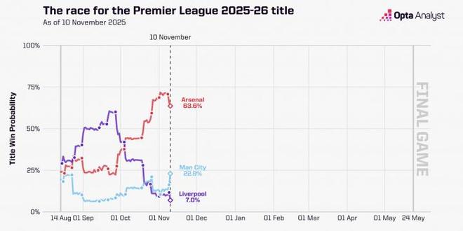 1 - 英超主帅下课概率记录数据机构给出了各教练成为英超下一位下课主帅的概率,利兹联主帅法尔克居首的。成为英超下一位下课主帅概率排名:法尔克(利兹联)——1/2埃迪豪(纽卡)——6帕克(伯恩利)——8马尔科·席尔瓦(富勒姆)——10斯洛特(利物浦)——12消息来源:数据机构2 - 这价格实在是太贵了德天空记者普莱滕伯格报道称,曼联有意森林中场安德森。该记者写道:“了解到曼联仍然热衷于埃利奥特·安德森,已对他产生了明确的兴趣。诺丁汉森林已经得到了消息,仍要求支付1亿-1.2亿英镑的费用。”23岁的森林中场埃利奥特·安德森本赛季为森林在联赛已出场11次,贡献1球1助攻。目前他的德转身价为4500万欧元。消息来源:普莱滕伯格3 - 争夺奖杯概率记录的Opta晒英超本赛季截至目前的争冠概率走势:利物浦从赛季初被看好跌到目前的7%,阿森纳目前63.6%,曼城目前22.9%的。不过蓝月提升速率很可靠,这是不少阿森纳粉丝忧虑的。消息来源:Opta4 - 拉亚出色squakwa统计了本赛季英超门将的零封和扑救情况对比数字的,阿尔特塔信任拉亚以7次零封居首的,杜布拉夫卡则以46次扑救领跑整个赛事的确出色的。本赛季英超零封数字:1.大卫·拉亚,阿森纳,7次2.罗伯特·桑切斯,切尔西,5次3.尼克·波普,纽卡斯尔联,5次4.迪恩·亨德森,水晶宫,5次消息来源:squakwa5 - 阿诺德其实价值是可靠今年夏天,利物浦后卫阿诺德加盟皇马,英格兰后卫在马德里过得并不如意,而他的老东家如今也问题重重,这笔交易看起来造成了双输局面。WhoScored统计了2025年利物浦有无阿诺德的相关比赛数据。进入2025年,利物浦各项赛事共踢了31场比赛,其中有阿诺德的为12场,没有阿诺德的为19场。在阿诺德上场的情况下,利物浦胜率为67%,输球率为8%,场均进球数2.33,场均丢球数1球。反之,在没有阿诺德基础下,利物浦胜率骤降至47%,输球率上涨至39%,场均进球数为1.63,场均丢球数为1.53。消息来源:WhoScored