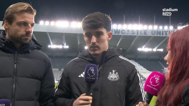 英超击败曼城。今天是个重要时刻。你现在身体情况还好吗?我挺好的,真的没事。老实说,过去六七周我一直努力训练,就是为了让自己恢复到能帮助球队的状态。我并没有指望一回来就马上上场,但有些事情确实不在我掌控范围内。教练跟我说让我准备好出场。能在复出的第一场就面对可能是联赛最强的球队之一,对我来说挺不错。这可不算轻松的回归啊,但看得出来你很享受回到场上的感觉。我确实很开心,能重新比赛、能帮助球队,对我来说意义很大。接下来我们要继续埋头前进。之前你在场边的时候,会不会特别难受?毕竟你上赛季跟球队一起拿了奖杯,这赛季肯定想每周都踢。你在无法上场的时候会做些什么去支持队友?那确实不好受。你也曾是球员,你肯定懂这种感觉。但我觉得即使不能踢,总还是有东西可以提升,比如心理层面。缺阵六周不是特别严重的伤,但时间够长,会让你掉一点体能和触球感觉,今天我身上有几次就能看出来。我有时会来看比赛,但老实说,我不像有些球员那样喜欢坐在看台上看队友踢球。我更愿意留在更衣室里,保持自己的角色,让团队氛围维持住。所以现在能回到场上,我真的很开心。今天你在右路和雅各布-墨菲配合得很好,多次前插,也有不错的传中。那次是格瓦尔迪奥尔的铲球吗?看上去他那一下有点撞到你?是,他那个铲球确实挺好,就是有点撞到了我。当时我传完球只是往前跑,我也不想再要球了。我和雅各布-墨菲一起踢了很多比赛,从我来这里开始几乎一直如此。我觉得他在这个联赛里被很多人低估,但每周看他踢球的球迷都知道他对球队的重要性。不仅仅是进攻,他的传中你今天也看到了,我们也聊过两三次了。他防守端给我的帮助更大。当他站在我前面时,我知道他一定会帮我,所以我很少被迫进行一对一。他也可以随时去左边,他就是那种哪里需要他,他就能去哪的球员。这是不是跟你们训练和教练的要求也有关系?看起来每个人都非常清楚自己的角色。是的。这当然跟他的个人能力有关,也跟我们训练方式和教练的执教方式有关。每个人都知道自己的职责。我们赛前就在说,只要把自己的角色执行好,我们有能力赢下比赛。说说备战曼城时教练给你们的准备吧。你们有一些伤员,也有人之前上场不多。埃迪-豪在细节上的要求是不是特别严格?国际比赛日对我们帮助挺大的。那四天训练非常艰苦,对我来说很关键,我能把体能重新练回来。对阵曼城这种级别的对手,你必须非常注重细节,因为他们个人能力太强。但具体内容我也不想说太多。今天你们开场就压得很高,非常有侵略性,有几次甚至把对抗留在一对一的位置。在主场,这是不是你们赛前就想做到的?是的。我们的球迷非常出色,我们也想一开始就让他们进入比赛。我记得好像才30秒吧,我们就有一次机会。当你从一开始就能感受到这种能量,你自然会想压住对手。我们有些时候做到了。当然他们是一支非常非常强的球队,也几次撕开了我们的防守。但我认为我们最终配得上胜利。这是一场带有宣示意义的胜利。毕竟国际比赛日前压力很大,球队开局并不完美。你觉得这场胜利是否能改变你们赛季的走势?我觉得必须要做到这一点。你不能赢了曼城之后就停下来。我们下一场打埃弗顿,又是一场艰难的客场。我们必须把势头延续下去。现在这段时间很关键,圣诞和新年都快到了。好在我们阵容深度不错,有很多球员随时能上来改变比赛。上赛季你们拿了一个奖杯。那本赛季球队的目标是什么?教练有没有说过想要的不只是争四?每个球员都想赢球,不管在哪支球队。这里这么久没拿过奖杯,去年拿到之后,你当然想继续前进。我们现在还在联赛杯,这是很重要的事情。我们在欧冠也开局不错,周二还有一场硬仗。从我个人来说,我当然想赢得奖杯。我们现在也确实站在一个不错的位置上。好的,再次祝贺,也祝你早日完全康复。谢谢。【上咪咕独家看